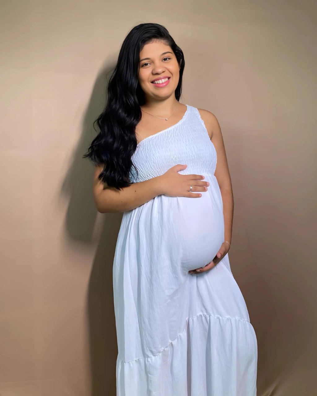 uma peça encantadora que combina elegância e conforto. Com um design de um ombro só e lastex no busto, este vestido é perfeito para você brilhar em chá revelação, festas ou eventos.